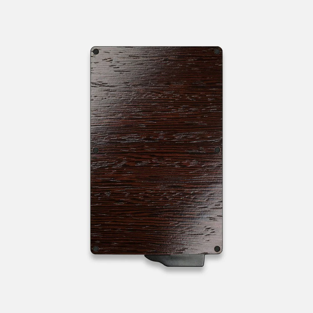 At only 9mm, this slim 6-card holder is finished on both sides with Wenge veneer. Beneath the wood are the anodized aluminum body panels which provide strength the block RFID transmissions to keep your cards safe.